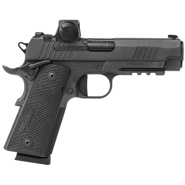 The classic 1911 has joined the Red Dot Revolution with the introduction of the new 1911-XFULL from SIG SAUER. A balance of classic engineering and style with modern upgrades including an ultra-low-profile direct-mount optic capability and XRAY3 Day/Night sights for extreme sight picture visibility. An adjustable flatblade trigger and custom G10 grip panels from LOK Grips takes shooting ergonomics to the next level for exceptional handling and comfort. Outfitted with a railed stainless-steel frame with undercut trigger guard, extended ambidextrous manual safety and slide stop, front and rear serrations and a removable metal magwell. A stylized stainless-steel slide, unrivaled custom aesthetics, and a serrated checkered front strap bring upgraded features to a timeless platform. Available in two full-size 5-inch options chambered in .45AUTO with 4.25-inch carry models
