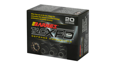 The Optimized Solution for Personal and Home Defense. Loaded with the venerable Barnes TAC-XP bullets, TAC-XPD ammunition is engineered and designed to deliver top performance when it is most critical: in life-threatening situations The TAC-XP’s all-copper construction and very large, deep hollow-point cavity expand, penetrate and perform more consistently than any personal defense product on the market.