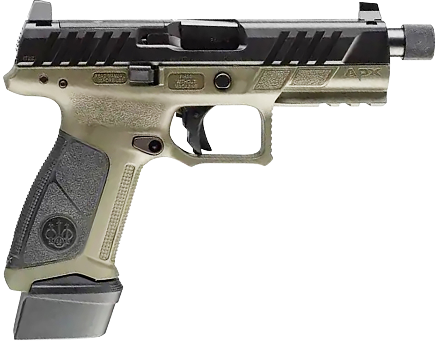Beretta APX A1 Tactical it was developed in collaboration with special forces units to offer peak performance and unmatched durability. The pistol comes packed with features such as 1/2″-28 threaded barrel, blacked out suppressor height sights; increased mag capacity; red dot optic-ready; 3 slot Picatinny rail; serrated combat trigger guard; ambidextrous reversible mag release and slide release. Includes three 21rd extended magazines and interchangeable backstraps (S,M,L).