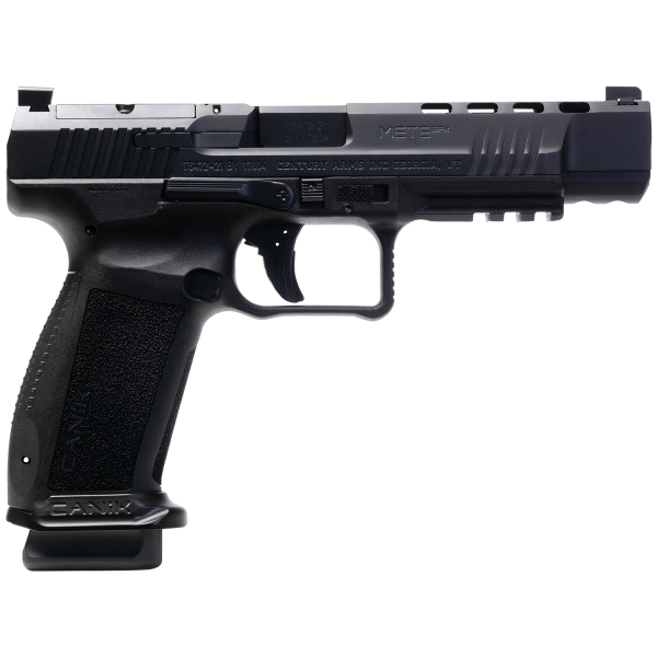 The METE SFx series incorporates changes designed to take a great product and elevate it to the next level of semi-automatic sporting pistols. The external changes are subtle. An integrally flared mag-well allows for fluid reloads and extra support for the grip, aggressive texturing to include the front of the grip allows for increased stability; the double undercut trigger guard secures the support hand on the firearm; the low profile slide stop lever and angled rear sight edge increase functionality in a multitude of situations; a co-witnessing optics ready slide cut now accepting everything from a Trijicon RMRcc all the way to a micro optic allows for a constant and reliable sight picture; ergonomically redesigned beavertail. The internal changes begin with easy in, easy out push pins that can be removed using slight pressure and the Canik punch. Includes a hard case, two standard capacity magazines, magazine E-Z loader, Speed mag-well, extra back strap, two optics bases, reversible IWB/OWB holster, Canik punch and toolkit, cleaning kit, gun lock and manual.