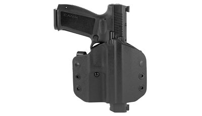 The Canik METE SFx is loaded with high performance features for increased reliability, accuracy, and durability. Features include a 5.2 inch barrel, an optics ready slide, an integrated flared mag-well, and an angled rear sight edge for emergency one-handed operation. Its accessory pack includes interchangeable backstraps, a cleaning rod, two magazines, and a polymer holster with a paddle attachment and belt attachment.