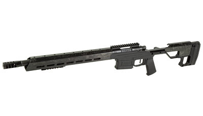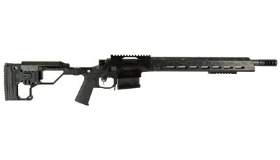 The Modern Precision Rifle is an ultra-lightweight chassis rifle designed to break with tradition. Beyond the folding stock the complete package is well equipped with a target contour Christensen Arms carbon fiber barrel, carbon fiber comb, free-floating carbon fiber handguard, and 20 MOA rail. The action and stainless steel side-baffle muzzle brake are finished in Black Nitride for a sleek look. The Modern Precision Rifle weighs in starting at 6.9 pounds and is backed by the Christensen Arms Sub-MOA Guarantee.