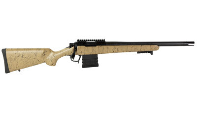 The Ridgeline Scout combines all the best features of the Ridgeline into a new, compact scout rifle. Additional features include a Black-Nitride coated action, 0-MOA optic rail, barricade stop, AICS drop-box magazine, and a flat-shoe Trigger Tech trigger all in a tan and black carbon fiber composite Sporter stock. The 16″ barrel with a removable 3-prong flash hider make the Ridgeline Scout an ideal suppressor host.