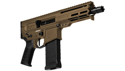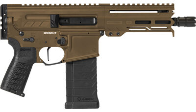 The next evolution of the AR15. Chambered in the iconic 5.56x45mm cartridge, the DISSENT is unlike any other AR15 Personal Defense Weapon, ditching the buffer tube and traditional AR recoil system in favor of their patent-pending Compact Action. In addition to the revolutionary Compact Action that shrinks this AR pistol’s footprint significantly, the DISSENT features a forward non-reciprocating side charger that allows you to charge the weapon without coming off target.