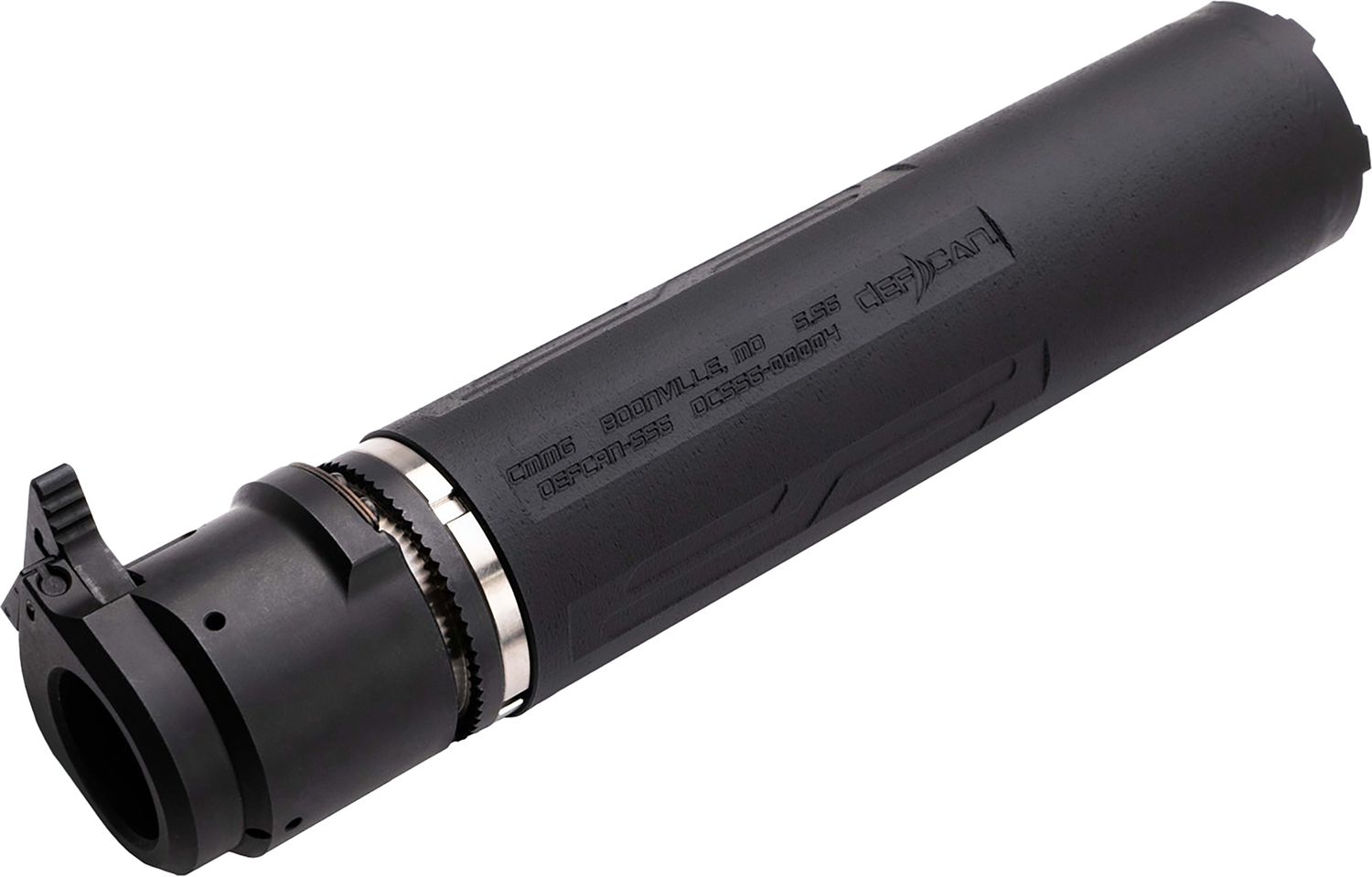 Designed specifically for 4.6x30mm and 5.7x28mm, the DEFCAN-57 is the match made choice for those with a 4.6 BANSHEE or 5.7 DISSENT that want to complement the modern PDW. Boasting greater sound reduction than the DEFCAN-22 for higher pressure .17-.22 cal centerfire cartridges, the DEFCAN-57 features a QD ratchet attachment mount that’s compatible with the included ZEROED Flash Hider and MP7 profile muzzle devices.