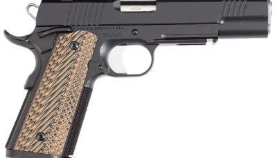 The Dan Wesson Specialist is a 1911-style pistol designed for law enforcement and personal defense. The slide, frame and barrel are all hand-fit, ensuring precise tolerances. Featuring a Black Duty finish; optics-ready slide; match-grade barrel; the front strap and mainspring housing are checkered for an improved grip; G10 grips provide a comfortable and secure hold; integral 1913 Picatinny; undercut trigger guard and recessed slide stop enable the installation of laser grips; ambidextrous thumb safety makes it a popular choice among left-handed shooters; fiber optic front sight and an adjustable rear sight.
