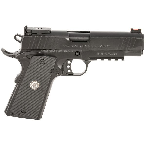 EAA GIRSAN 390605 MC1911 C Carry Frame 10mm Auto 9+1, 4.40″ Black Steel Barrel, Blued Serrated Steel Slide, Black Steel Frame w/Beavertail & Picatinny Rail, Black Grip, Ambidextrous