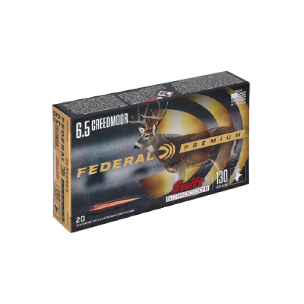 Push effective range to new extremes while delivering a more lethal blow on impact with Federal Premium Swift Scirocco II loads. The polymer-tipped bullet’s streamlined design and high ballistic coefficient produce flat trajectories, while retaining more velocity and energy downrange. Aided by its Signature Black Tip, the bonded Scirocco II expands at minimal velocities yet offers high weight retention at close range thanks to its bonded copper jacket.