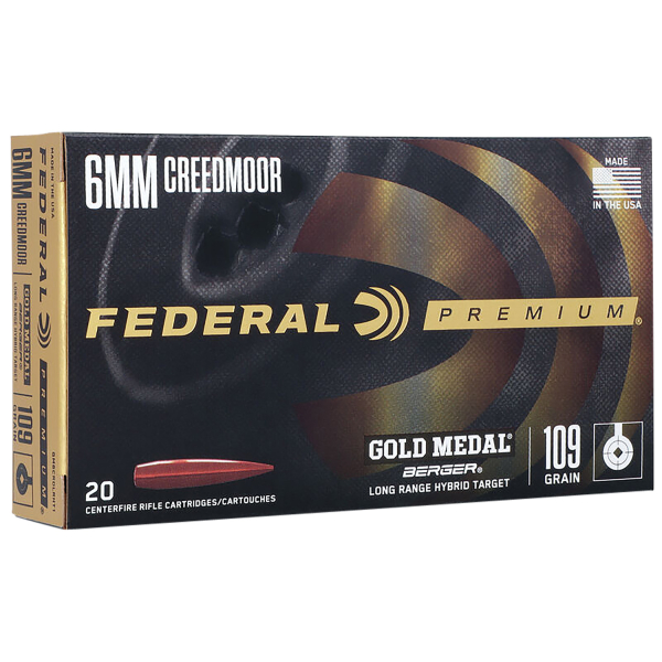Federal GM6CRDLRHT1 Premium Gold Medal 6mmCreedmoor 109gr Berger Long Range Hybrid Target 20 Per Box/10 Case