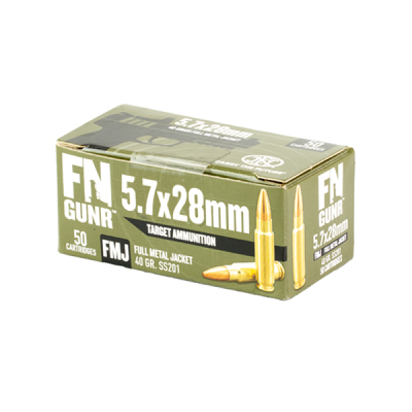 From the originators of the 5.7 caliber, the FN GUNR 5.7x28mm training round puts new targets in reach for 5.7 owners. Train harder and longer with the 40-grain full metal jacketed round that delivers extremely low felt recoil, improved accuracy at extended ranges and reliable feeding across all 5.7-chambered firearms.