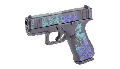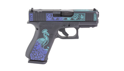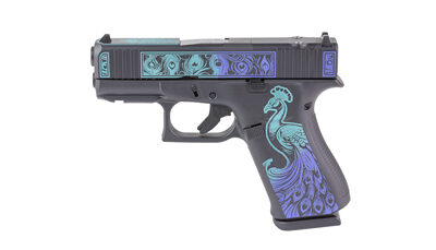 Chambered in 9×19, the G43X MOS has slide cuts designed for specific micro-optics and the GLOCK Slim Mounting Rail for attaching accessories. It is the ideal tactical partner in the well-known GLOCK Slimline design for easy concealment. This exclusive model features a custom Peacock Cerakote finish by Shark Coast Tactical.