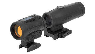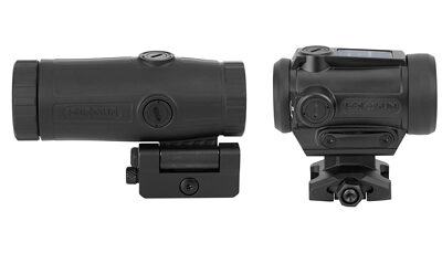 ARO-EVO is the ARO (Advanced Rifle Optic) EVOlved. ARO-EVO features a brand-new 26mm housing design that provides a larger sight picture, giving the user more information for improved performance shooting, along with Holosun’s new lower 1/3 co-witness pedestal mount. The newly designed housing perfectly integrates with their magnifier series and includes a new lens cap and anti-reflection system. Additionally, AROEVO is available with their new Special Purpose Reticle (SPR), which is a bullet-drop compensating and ranging reticle that balances the performance of a 2MOA dot with accuracy at intermediate distances. ARO-EVO can be equipped with their Special Purpose Reticle or a 2MOA dot, available in Red, Green, and Gold.