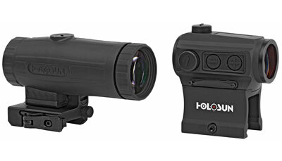 The HS403C is a 20mm micro optical sight designed for rifle and carbine applications. Features include Solar Failsafe, 12 brightness settings, Holosun’s Green Super LED with up to 50k hour battery life, and 2 MOA Dot. The HM3X is an Aluminum bodied 3X magnifier that includes a quick release, ambidextrous, flip-to-side mount with Absolute and Lower 1/3 Co-witness mounting solutions. Additional features include 2.75″ of eye relief, IP67 certified water resistance, with windage and elevation adjustment for precision zeroing.