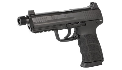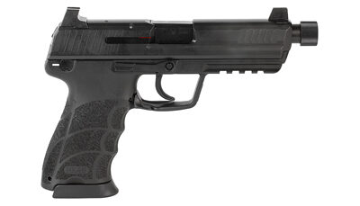 Originally developed as part of the U.S. military’s Joint Combat Pistol program in 2005-6, the HK45 Tactical model is the threaded barrel version of the HK45 and comes standard with a threaded barrel and adjustable Truglo high-profile sights that are suitable for use with or without suppressors. The sights are made exclusively for HK. The full-size HK45 Tactical (HK45T) model features an ergonomic grip design that includes changeable backstraps along with molded finger grooves that naturally position the user’s hand for optimal shooting. All HK45 pistol series (compact, full-size, Tactical models) are manufactured at HK’s American facility in Columbus, Georgia using American and German components.
