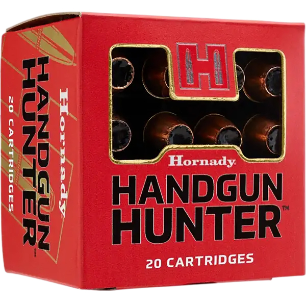 Whether you’re bagging a bull, buck, or boar, Handgun Hunter is as rough and rugged as the game demands. Its deep penetration also makes it a great round for your backup handgun. Each load features Hornady’s MonoFlex bullet, combined with premium cases, primers, and powders, offering superior performance. Harder and tougher than solid copper, the copper alloy of the MonoFlex bullet doesn’t separate, achieving deep penetration. A unique elastomer material is added to the bullet’s open cavity. It compresses upon impact, then pushes out, causing the bullet to expand quicker than a standard hollow point.