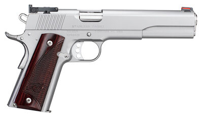 The Stainless Target (LS) (long slide) has a 6 inch slide and adjustable rear target sight and red fiber optic front sight for fast sight picture acquisition.