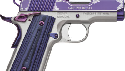 Kimber Mfg, Inc 3200319 Ultra II 9mm Luger 8+1 3″ Stainless Match Grade Barrel, Engraved Purple Amethyst PVD Serrated Stainless Steel Slide, Satin Silver Aluminum Frame w/Beavertail, G10 Grip