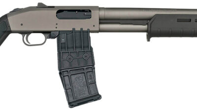Mossberg 50221 590M 12 Gauge 10+1 18.50″ Tungsten Gray Cerakote Barrel & Steel Drilled & Tapped Receiver, Magpul SGA Black Synthetic Stock