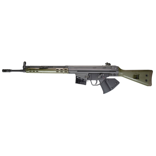 The GI rifle with a roller-delayed blowback has a Parkerized finish with classic green furniture, 18″ tapered barrel and a polymer lower. The removal of the precision-welded top rail allows the use of original claw mounts and carry handle. Features a green polymer fixed stock with sling attachment (classic look) and paddle style mag release. *Note- This gun is CA compliant. This model comes with used stocks so it may have dings or blemishes