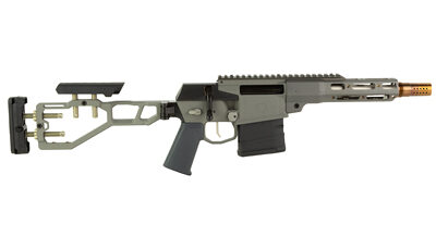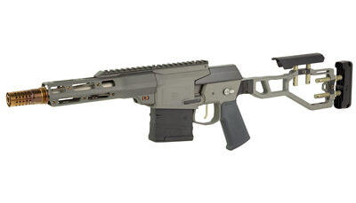 THE FIX & mini FIX are chassis-less, magazine fed, 45 degree throw bolt-action firearms intended for use by hunters, competitors, recreational shooters, and armed professionals alike. The unique one-piece receiver provides superior rigidity over multi-piece platforms and chassis, while reducing the amount of bulk and weight common in traditional bolt-action platforms. The receiver houses the trigger mechanism, bolt assembly, and barrel. Attached to the receiver are the grip, adjustable stock, handguard, and continuous (zero MOA) M1913 picatinny top rail. The Fix and mini FIX use an AR style fire control safety selector and grip, and are compatible with SR25 or AR15 pattern magazines, respectively.