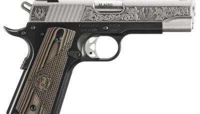 The Ruger SR1911 Prescott, AZ Edition models production will be limited to 500 total units. Featuring an engraved stainless steel slide with bald eagle on the sides with the Ruger logo and “200 Ruger Rd.” adorned on the top of the slide; lightweight aluminum frame and polished titanium feed ramp; positive barrel lock-up; replaceable grip panels and checkered backstrap; skeletonized trigger, skeletonized hammer and titanium firing pin for faster lock time; oversized beavertail grip safety, extended thumb safety and slide stop lever; oversized ejection port and extended magazine release; inspection port allows for visual confirmation of a loaded or empty chamber and a flat mainspring housing and rear slide serrations for a positive grip. Accepts most standard, aftermarket 1911 parts and accessories. Includes two 7rd stainless steel magazines and bushing wrench.