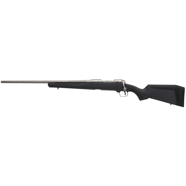 Savage’s 110 Storm model delivers a customized fit required for consistent accuracy. It features Savage’s AccuFit synthetic stock with five comb riser sizes for the perfect cheek-to-stock weld, four composite inserts to establish your unique length-of-pull, and AccuStock. The AccuStock consists of a rigid rail system firmly embedded in the stock throughout the foreend of the rifle. It also engages the action three dimensionally along its entire length. The 110 Storm also features AccuTrigger for flexibility, a stainless steel barrel with button-rifling, soft grip fore-end and pistol grip, a drilled and tapped receiver, and a detachable box magazine. This left hand .223 Remington model has a 22″ stainless steel barrel and a gray finish stock.