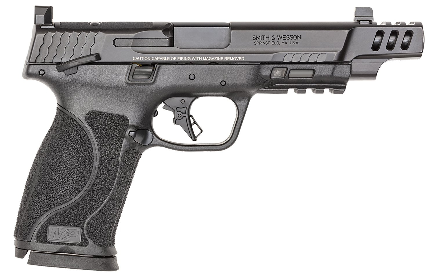 Smith & Wesson 13915 M&P PC M2.0 Full Size 10mm Auto 15+1 5.60″ Black Armornite Ported Stainless Steel Barrel, Black Armornite Optic Cut/Serrated Stainless Steel Slide & Polymer Frame w/Picatinny Rail