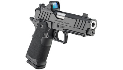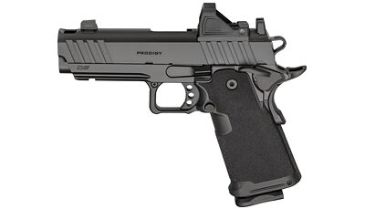 The Prodigy Comp 4.25 from Springfield Armory takes the proven 1911 platform and enhances it with double-stack capacity and a performance-driven feature set. Reconfigured around a double-stack magazine, the polymer grip module mounts to a forged steel frame, offering a capacity of 10+1 for those in restricted states. The 4.25-inch AOS-compatible slide and barrel assembly is integrally compensated to reduce muzzle rise, while a Picatinny rail is ready to accept today’s most popular accessories. The Prodigy Comp 4.25 combines the most beloved characteristics of the 1911 with modern capacity for unrivalled performance.