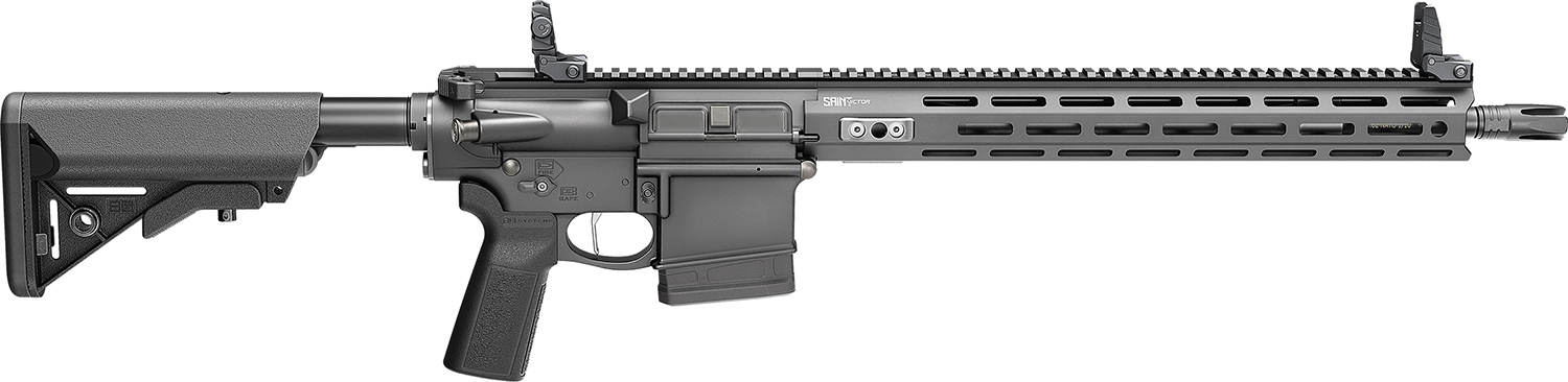 The Saint Victor features a free float aluminum handguard w/SA locking tabs and M-LOK; BCMGUNFIGHTER Mod 0 stock; Mil-Spec receiver extension; BCMGUNFIGHTER Mod grip; carbine “H” heavy tungsten buffer; Radian Raptor Ambidextrous charging handle; QD receiver end plate; 45-degree ambidextrous safety and a pinned adjustable gas block. Includes one 10rd Magpul PMAG Gen M3.