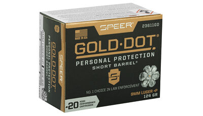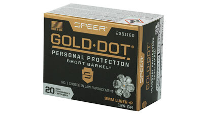 Gold Dot was the first handgun ammunition loaded with true, bonded-core bullets. Using an exclusive Uni-Cor(R) method, Speer bonds the jacket to the core one molecule at a time at the very beginning of the bullet construction process. This virtually eliminates core-jacket separation. With options for both standard handguns and short barrels, there’s a Gold Dot load to fit any shooter. Each Gold Dot hollow point cavity is tuned by specific caliber and bullet weight to ensure optimum performance. Speer forms the hollow point cavity in two stages. The first establishes how far the bullet can expand; the second controls the rate of expansion. This patented two-step cavity formation gives Speer engineers incredible control in the design process. Each bullet caliber and weight is tuned for optimum expansion and penetration. The bullet is then finished to provide a smooth profile for reliable feeding in semi-automatic handguns. To ensure Gold Dot performs when you need it most, they first make sure it excels in the stringent tests developed by the Federal Bureau of Investigation for service-class handgun cartridges. These protocol tests evaluate penetration, expansion and retained weight in bare gelatin and gelatin shielded by common barriers.