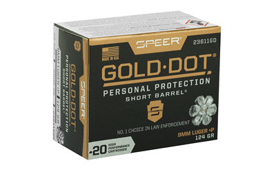 Be the first to review “SPR GOLD DOT 9MM+P 124G HP SB 20/200” Cancel reply