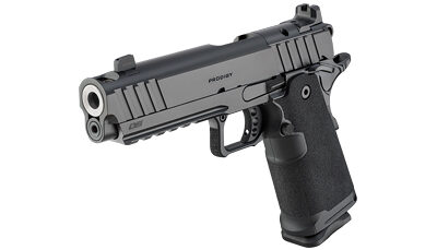 The Prodigy Comp 4.25 from Springfield Armory takes the proven 1911 platform and enhances it with double-stack capacity and a performance-driven feature set. Reconfigured around a double-stack magazine, the polymer grip module mounts to a forged steel frame, offering capacities of 17+1 and 20+1. The 4.25-inch AOS-compatible slide and barrel assembly is integrally compensated to reduce muzzle rise, while a Picatinny rail is ready to accept today’s most popular accessories. The Prodigy Comp 4.25 combines the most beloved characteristics of the 1911 with modern capacity for unrivaled performance.