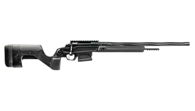 Building on the timeless Remington 700 footprint, this rifle features an interchangeable three-lug bolt head, a 60-degree bolt throw, a tool-less quick disassemble bolt, and a pinned recoil lug, offering a seamless blend of precision and reliability for every shooter. Chambered in 6.5 CM, this rifle features an 20″ fluted stainless steel barrel with a Cerakote finish. It is compatible with Zermatt Origin-shouldered pre-fits and non-shouldered Savage Small Shank barrels with a barrel nut. The modular, black, hybrid hunter stock has an adjustable cheek riser and length of pull, creating a stable and repeatable rifle fit. The stocks unique AR10-style design allows for tool-less takedown and convenient storage. The rifle’s action has a rigid, bolt-on 20 MOA-biased rail and comes with MLOK sections, a Picatinny spigot, and integrated QD cups. As well as a Arca Swiss plate, an attachable bag rider, and is AICS/AW compatible. The adjustable, single-stage Trigger Tech Primary offers zero creep for a consistent trigger press shot after shot.