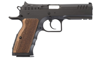 Tanfoglio IFG TFSTOCKI9 Defiant Stock I 9mm Luger Caliber with 4.50″ Barrel, 16+1 Capacity, Overall Black Finish Steel, Picatinny Rail/Beavertail Frame, Serrated Slide & Wood Grip
