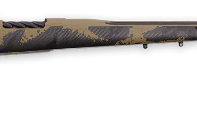Welcome to the top of the food chain, the Mark V APEX is where long-range accuracy meets lightweight hunting. The APEX is built on the iconic Weatherby Mark V steel action and comes with a fluted two-toned cerakoted barrel. Equipped with Peak 44s Bastion stock, among the lightest production vertical grip carbon fiber stocks on the market, weighing in at just 23 ounces. It features a comfortable ambidextrous palm swell and a substantial thumb groove to promote proper form while shooting. The forend features dual sling studs to allow the shooter multiple options when deciding on accessories. This upgraded stock allows shooters to comfortably and accurately shoot from all positions not only at the range but in the harshest of conditions while in the field. Also grabbing the eye is the second generation 3DHEX recoil pad, the first production 3D printed pad the firearms world has seen. Hidden inside the pad is a series of interlocking voids that progressively collapse during recoil, expanding the time component of the recoil impulse and deadening the sharp kick of magnum chamberings. This means less felt recoil resulting in better accuracy downrange. More pronounced spiral fluting on the bolt body not only trims weight but also reduces the bearing surface within the action and results in smoother bolt function. Fit with Weatherbys highly-effective Accubrake ST, this brake is blended to match the profile of the muzzle. With 30 symmetrically-spaced ports that help harness the recoil, it tames even magnum chamberings.