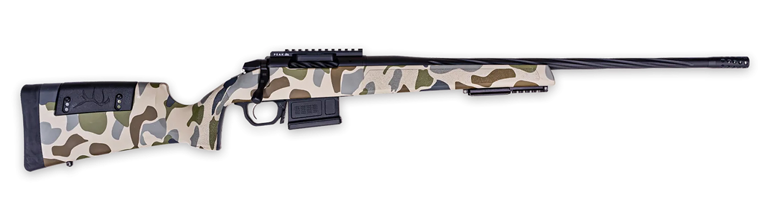 The Weatherby bolt action 307 Hush is a 2-Lug, fully cylindrical action compatible with many aftermarket accessories. It can accommodate the vast offerings of stocks, triggers, rails, mounts and magazines (700 platform parts). The HUSH rifle comes with a Peak 44 pic rail and is ready for your favorite optic. It also features Peak 44s forend Arca and pic rail adapter to accommodate multiple attachments. The stock features a custom, Hydrodipped finish and the metal work is a durable Cerakote.